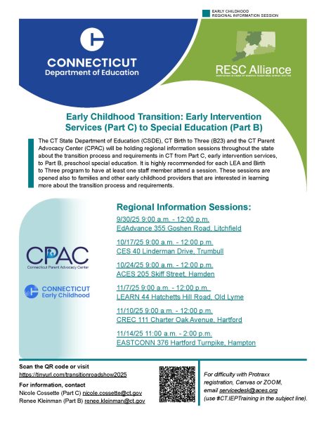 The CT State Department of Education (CSDE), CT Birth to Three (B23) and the CT Parent